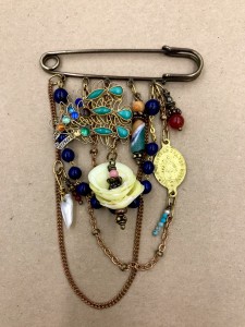 Broche en laiton pierres et coquillages